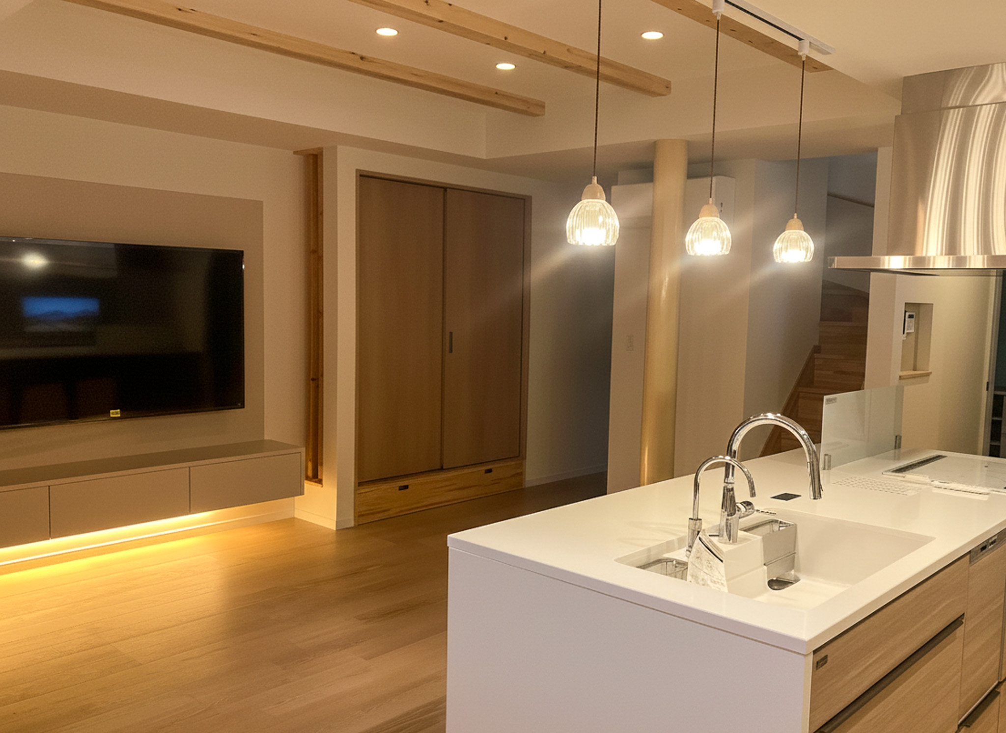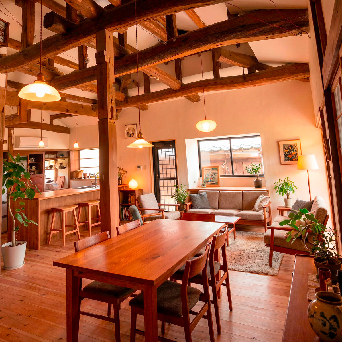 古い梁と現代の快適性の融合 温故知新の住空間